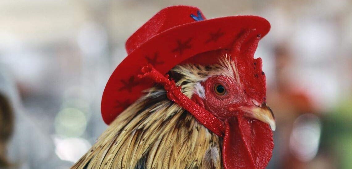 Is this bird, dressed up for the Fair, is named Cogburn?