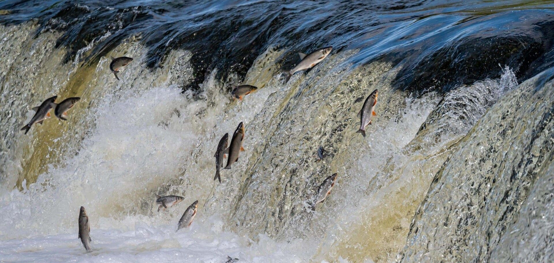 Salmon clearing a waterfall in California.