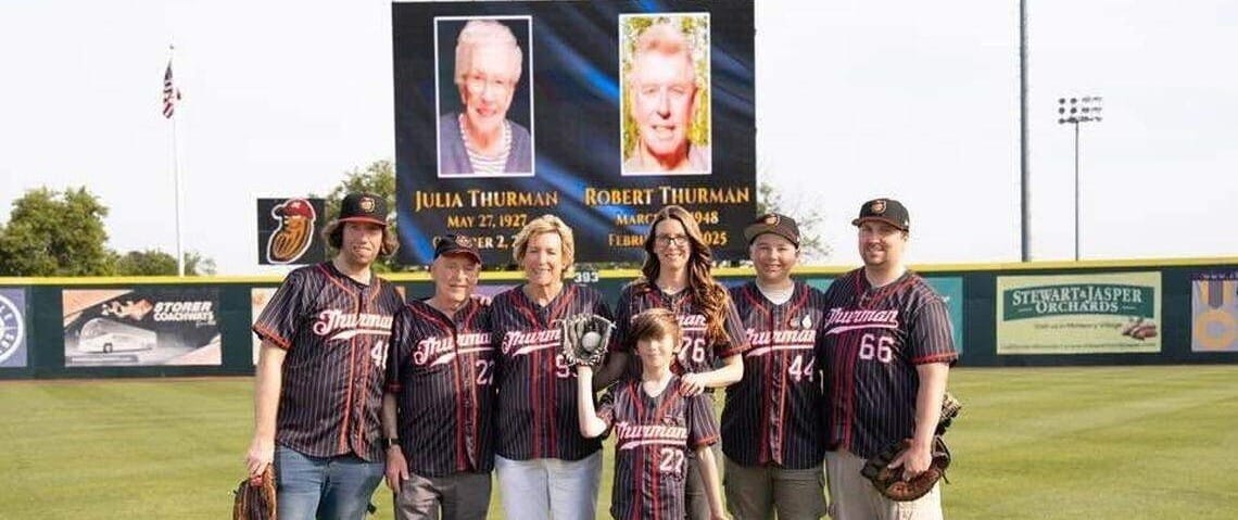 Members of the Thurman family at their namesake field.
