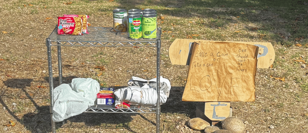 MAD Note: Pop-up pantries are showing up in all kinds of places, including front lawns where neighbors are leaving canned goods on tables and shelves with signs inviting those in need to simply take them.