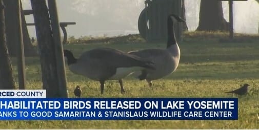 ABC30. Rehabilitated birds released on Lake Yosemite in Merced County.