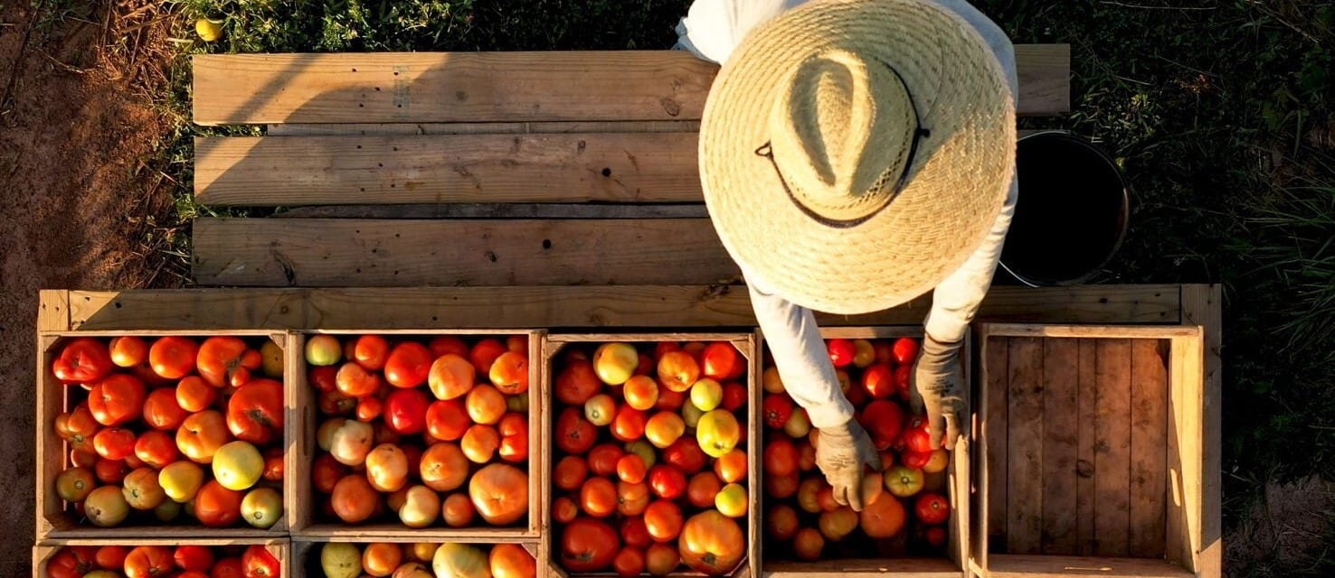 A farmworker in San Joaquin County working with apples.
