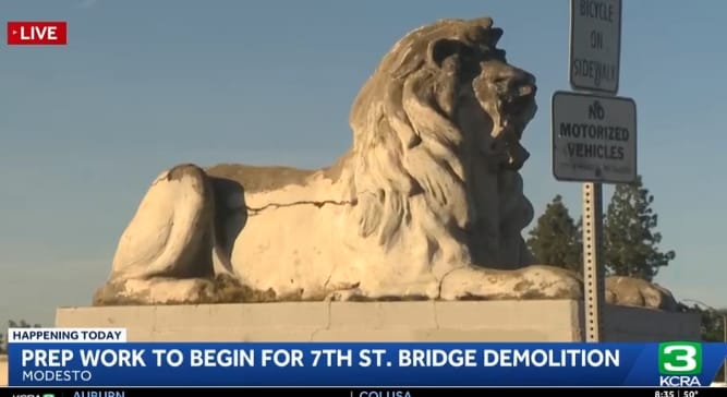 KCRA. Historic Modesto bridge to be demolished, but what’s going to happen to the lions?