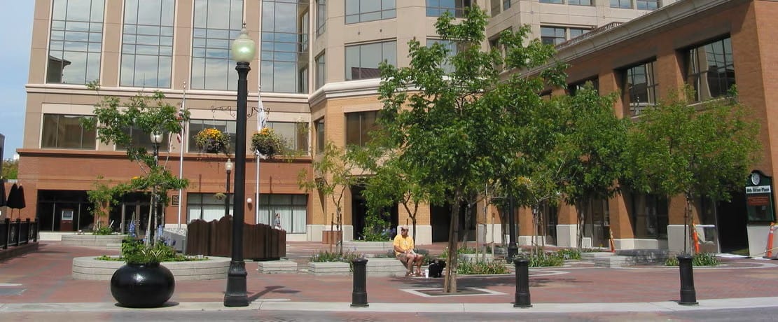 The plaza entrance to Modesto’s city hall.