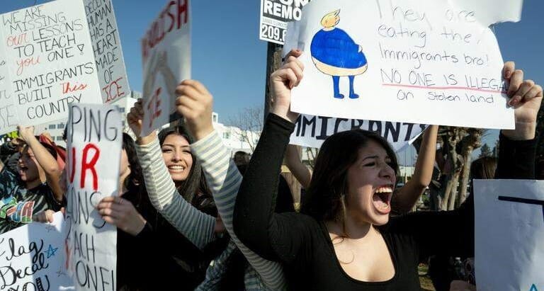 Students from Downey High protest in Modesto.