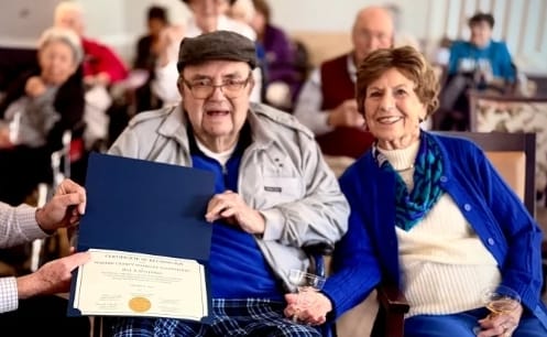 Synopsis: Bill and Bea Jones were married on Dec. 23, 1945, in Harrisburg, Ark. They celebrated their Oak Anniversary – one of only four couples in California to achieve that 80-year milestone – two days before Christmas. Bill is 98, Bea 99. Supervisor Rob Poythress called them “an inspiration to our entire community.” They live at the Cedar Creek Senior Living facility. Said Bea: “80 years of marriage, it’s a long time.”