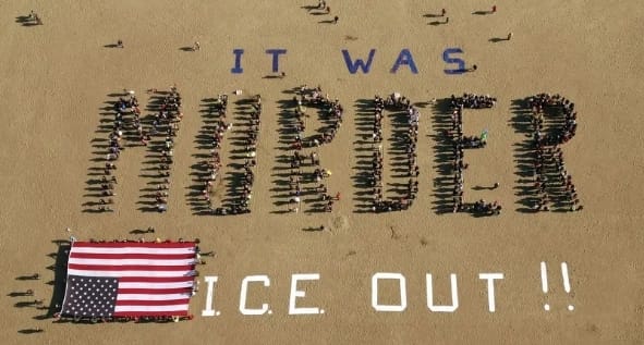 Synopsis: From Ocean Beach, where several hundred spelled out “It was murder,” to downtown San Francisco, thousands of people came out to protest ICE violence. There were an estimated 1,200 in the Mission. Protests in Berkeley, San Bruno, Alameda, San Jose, Hayward, Santa Rosa and Sausalito drew hundreds more. Said one protester: “We’re in real danger, so we’ve really got to come alive.” Another said she was moved to protest because the ICE violence has “sickened” her. A young dad pulled his daughter in a wagon, saying she needs to learn early that action is necessary. The only reports of trouble came from Oakland where protesters sprayed graffiti on the federal building.