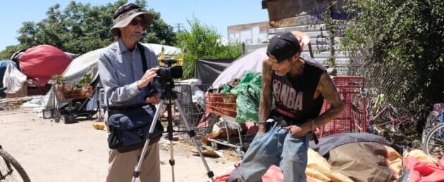 Ben Hoover filming part of his documentary, Homeless in Modesto II.
