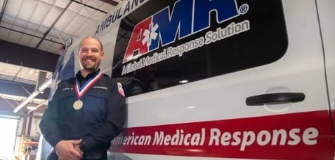 Synopsis: Dustin Wilson, who works for American Medical Response, was given the American Ambulance Assn Star of Life award. The Stockton-based paramedic was one of the first to respond to a man hanging from a rope off a bridge. The man had been attempting to rappel off the bridge but got fouled in his lines. Wilson went over the guardrail and secured the victim so he could be pulled to safety.